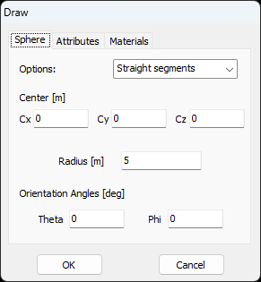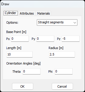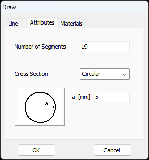 For this example, we will create a line along the z-axis that is 0.5 meters long, corresponding to half a wavelength at 300 MHz. Figure 10 illustrates the chosen starting point of the line at (X1, Y1, Z1) = (0, 0, -0.25) m, and the ending point at (X2, Y2, Z2) = (0, 0, 0.25) m. Next, switch to the Attributes tab (see Fig. 11). To ensure accurate results, the line should be divided into segments that are relatively short compared to the wavelength. Generally, a segment length equal to or less than one-tenth of a wavelength is considered short. AN-SOF suggests a minimum number of segments to achieve reliable results automatically. If you require higher resolution, you can increase the number of segments.