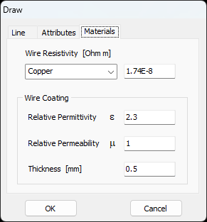 In this case, the line will be divided into 17 segments, and the wire cross-section will be circular with a radius of 5 millimeters. On the Materials tab (refer to Fig. 12), you can set the wire’s resistivity to zero.